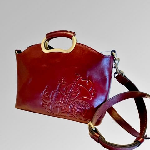 The limited-edition KSL Patricia Nash handbag features an embossed leather motif of a violin, clarinet, and French horn, paired with a detachable crossbody strap. Each bag is $200 with 100% of the purchase price supporting the programs of the Knoxville Symphony Orchestra.